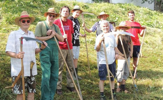 zu den Bildern: Des Pfarrers Wiese - gemäht von fleißigen Männern
